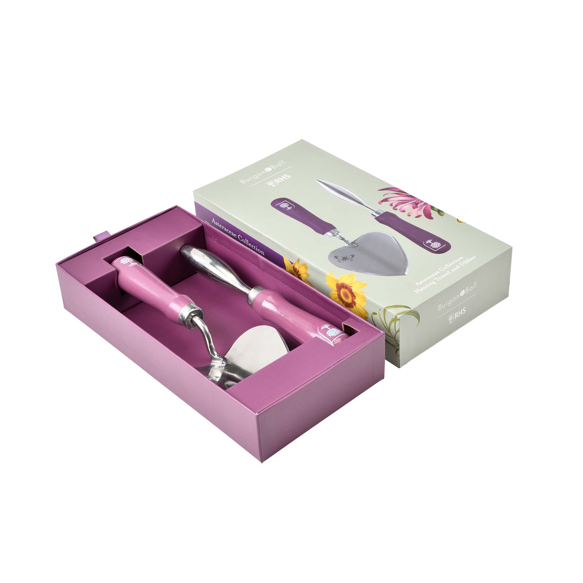 Ein tolles Garten-Geschenk für jeden Gärtner. Das RHS (Royal Horticultural Society) Geschenkset in der Variante »Asteraceae« besteht aus einer Herzschaufel und einem Pflanzstock in der bewährten Qualität von Burgon & Ball. Beide Werkzeuge wurden von der RHS ausgezeichnet, der wohl höchsten Auszeichnung im Gartenbau. Wunderbar ergänzt wird das Asteraceae-Design durch den auberginefarben lackierten FSC©-Hartholzgriff, und der zarten Schmetterlingsgravur auf dem Schaufelblatt. Zudem gewährt Burgon & Ball eine lebenslange Garantie!