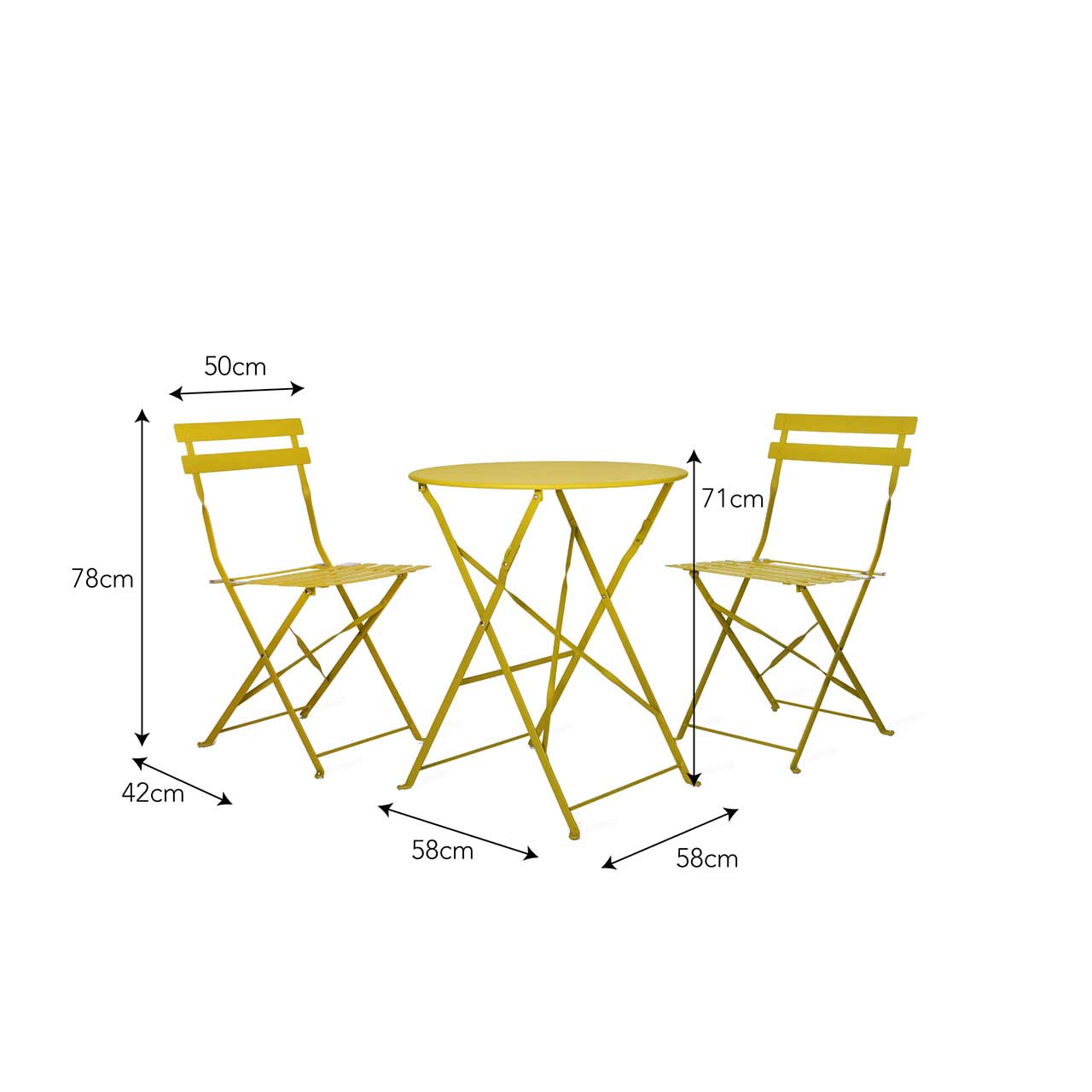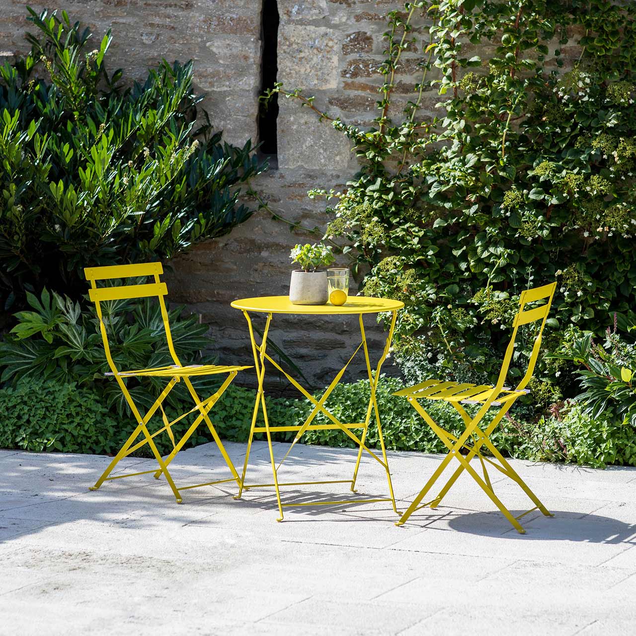 Das kleine Bistro-Set, hier in der Farbvariante »Dandelion«, passt perfekt in eine gemütliche Ecke im Garten. Ist ein hübsches Plätzchen gefunden, kann man zwischendurch mal eine Pause von der Gartenarbeit einlegen oder bereits über das nächste Gartenprojekt sinnieren. Die leichten und zusammenklappbaren Gartenmöbel können dabei von Platz zu Platz "mitwandern".