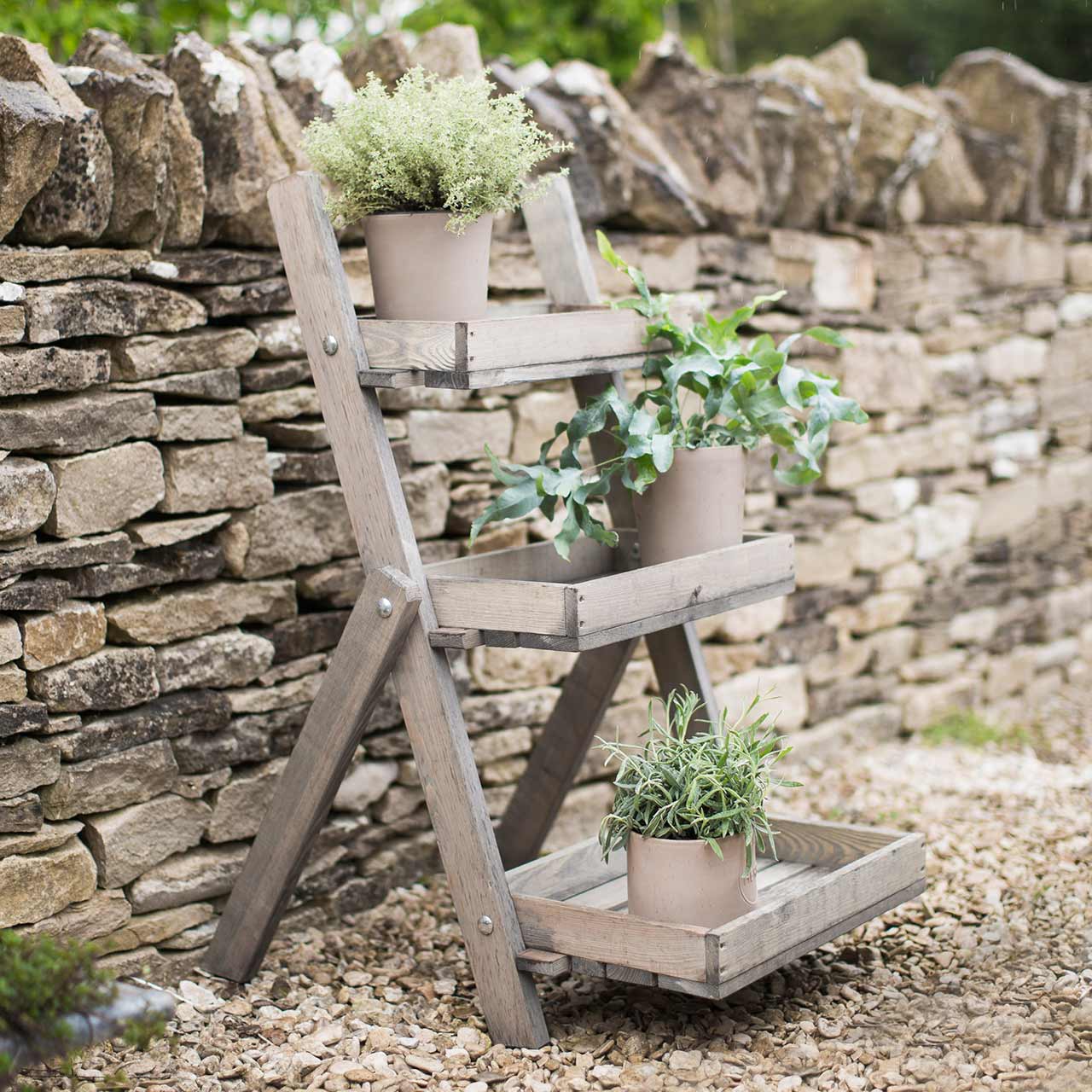 Unsere Blumenleiter »Idbury Pot Ladder« bringt viel Charme in Ihren Garten, ist obendrein praktisch und vielseitig nutzbar. Präsentieren Sie Ihre Lieblingsblumen in einem dekorativen Topf oder einer schönen Vase; durch die unterschiedlichen Ebenen kommen diese toll zur Geltung. Vielleicht nutzen Sie die Blumenleiter auch als Kräutertreppe auf Ihrer Terrasse oder dem Balkon und haben so Ihre Küchenkräuter stets in "Schnittweite". Oder nutzen Sie die kleine Leiter als originelle Ablage für Getränke und Bestecke bei der nächsten Gartenparty...