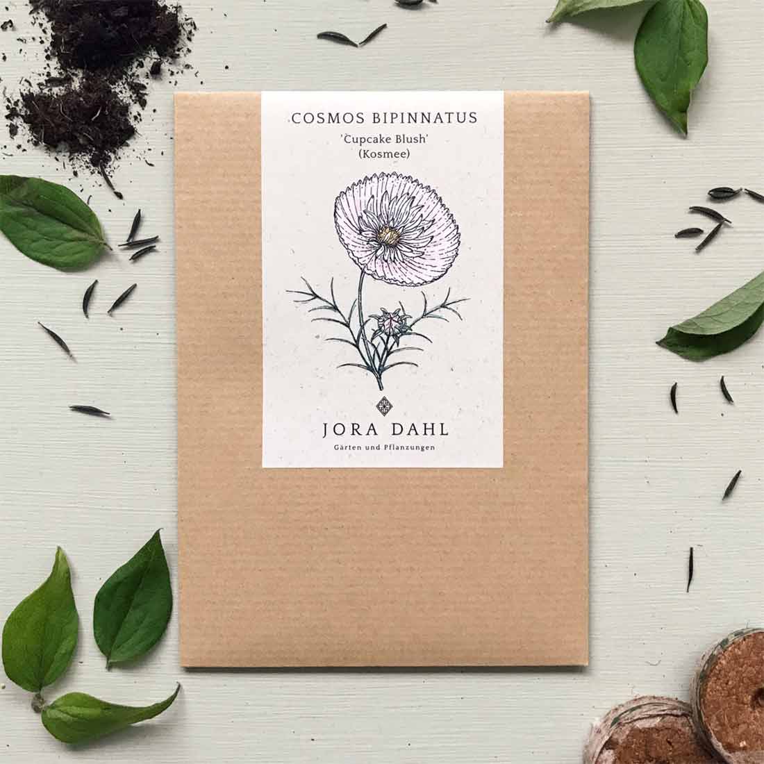 'Cupcake Blush' ist eine neue, märchenhafte Kosmeenzüchtung, deren Blüten in zartem Rosa und Weiß an die Tüllröcke von Balletttänzerinnen erinnern. Kosmeen sind unglaublich robuste und reichblühende Schnittblumen, ideal für Anfänger geeignet.