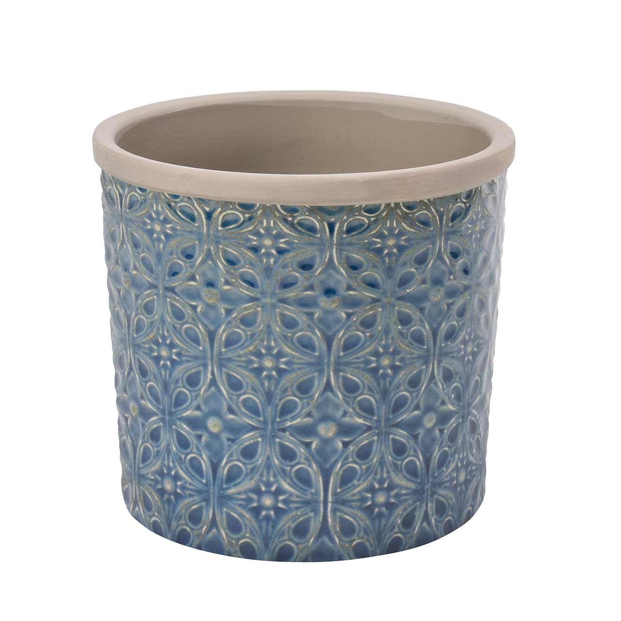 Der Blumenübertopf »Porto« ist eine Reminiszenz an das reiche Keramikerbe dieser Region. Die Kunst der portugiesischen Fliesenmalerei geht bis auf das 15. Jahrhundert zurück und ist teilweise arabischen Ursprungs. Das traditionell kreisförmige, sich wiederholende Muster des Topfes orientiert sich an diesem Design und zeigt eine schöne handwerkliche Ausstrahlung. Der Blumenübertopf »Porto« wird aus Steingut gefertigt und ist durch seine Glasur wasserdicht.