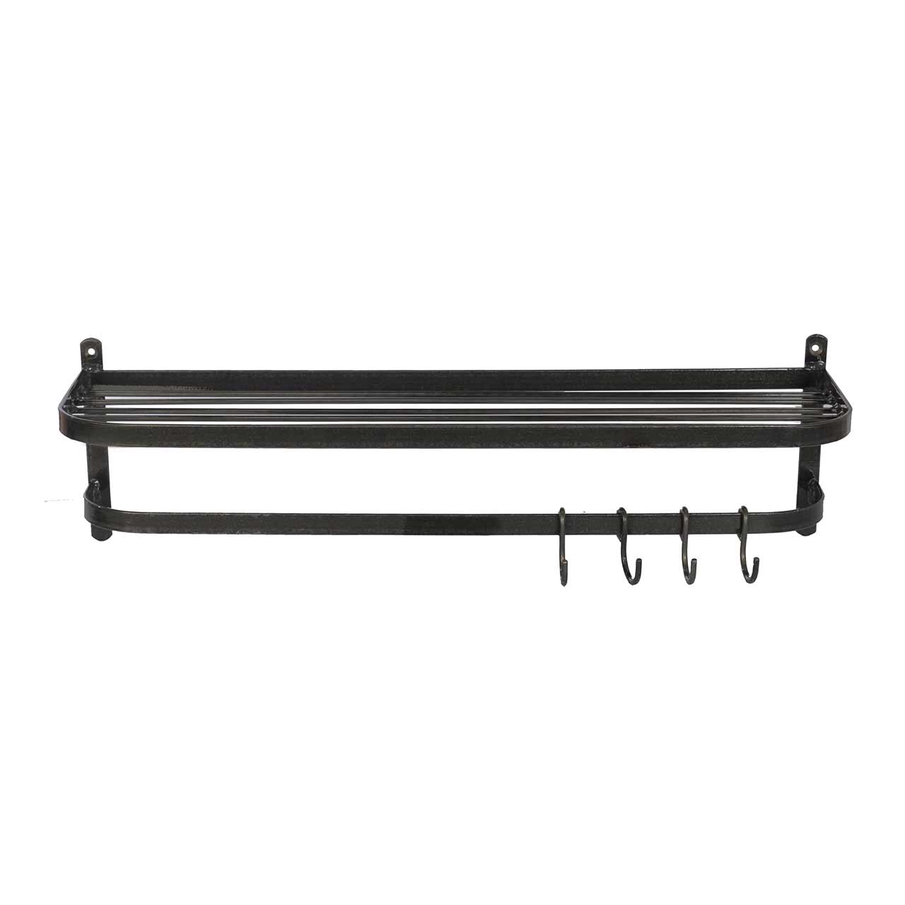 Die Garderobe »Alderton« ist inspiriert von den Gepäckträgern in alten englischen Zügen. Das robuste, aus Stahl gefertigte Garderobenmöbel sorgt für Ordnung im Eingangsbereich; es kombiniert ein Regal zur Hutablage und bewegliche Haken zum Aufhängen ihrer Jacken und Mäntel. Die Kleiderhaken können nach Bedarf verschoben werden. Die Garderobe ist mit einem transparenten Mattlack beschichtet, wodurch die Oberfläche glatt bleibt, aber nicht an ihr industrielles Design verliert.