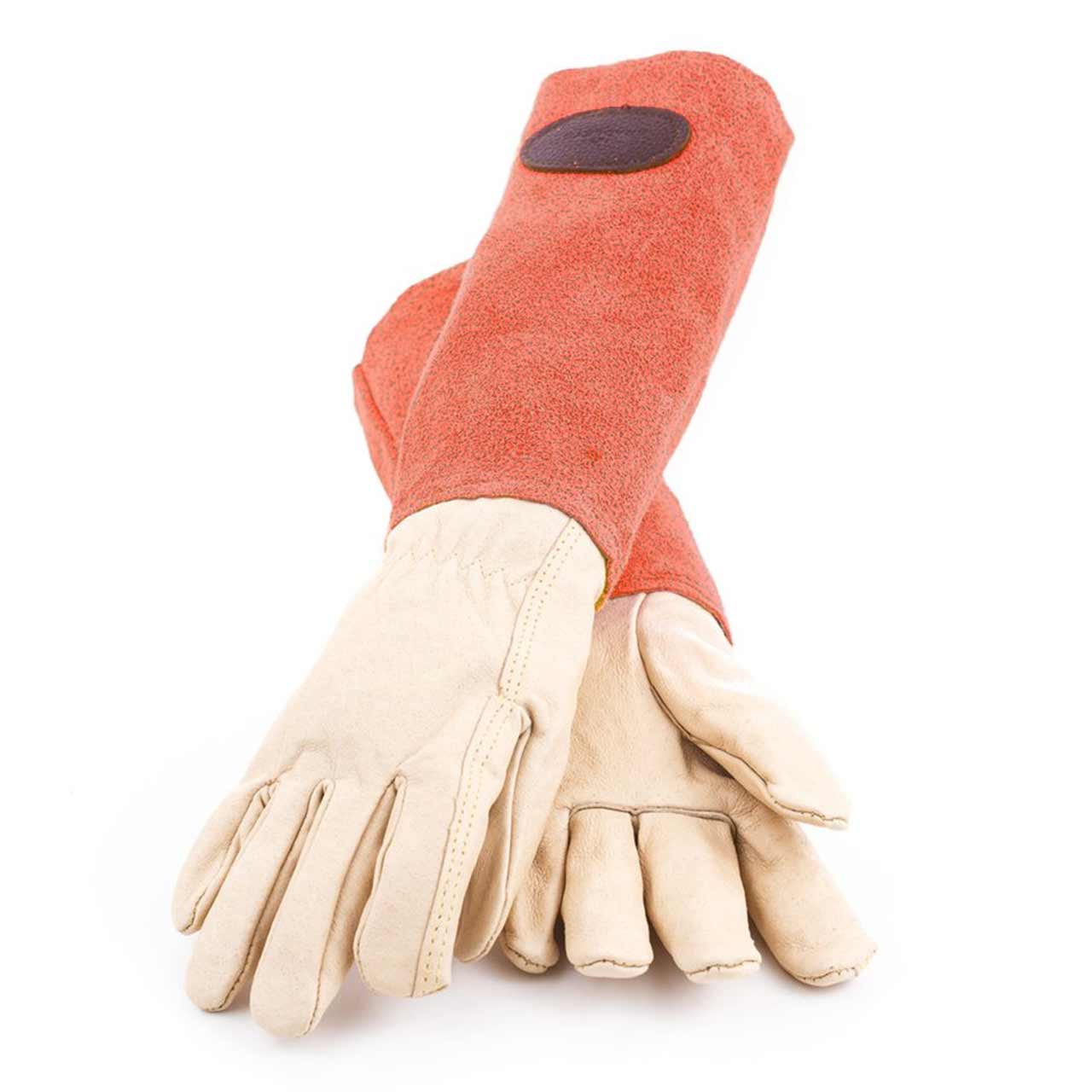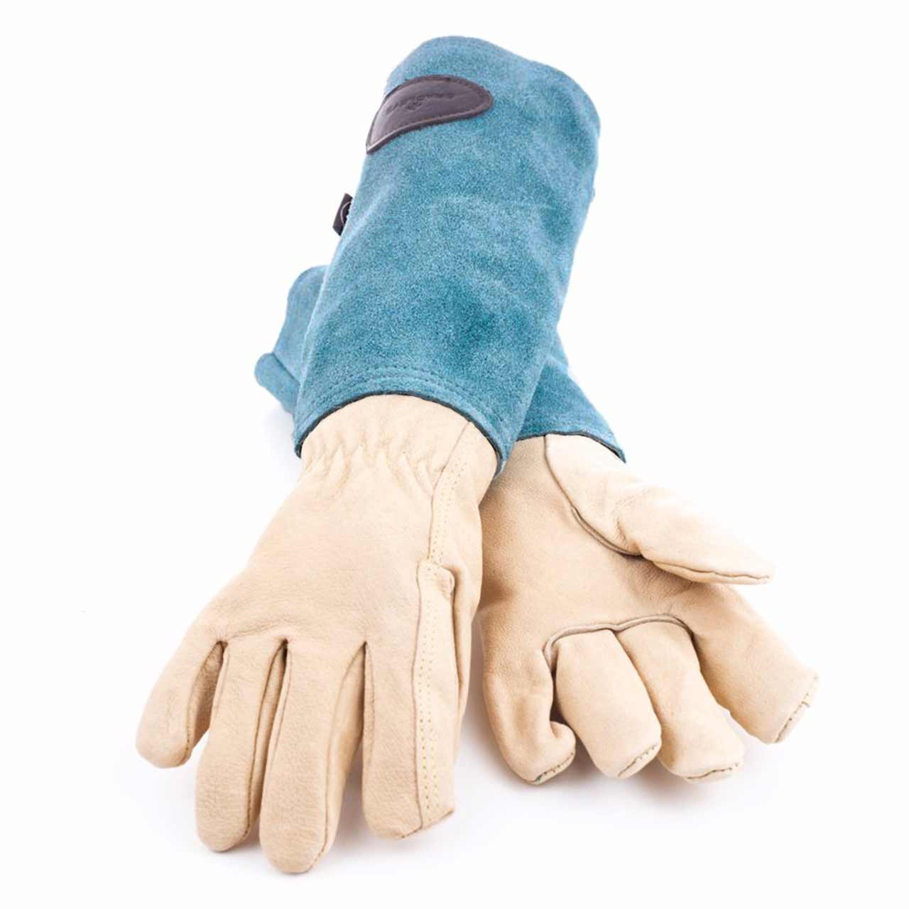 Stabile und hochwertige Handschuhe von Bradleys™, in Gänze aus Leder gefertigt. Die Handschuhe eignen sich hervorragend für die meisten Arbeiten im Garten, insbesondere zum Rosenschnitt. Mit den starken Handschuhen aus Rindsleder lässt sich auch problemlos allerlei Stachliges und Dorniges entfernen, selbst Disteln und wilde Brombeeren. Die hochgezogenen Lederstulpen schützen dabei die Arme zuverlässig vor Verletzungen.