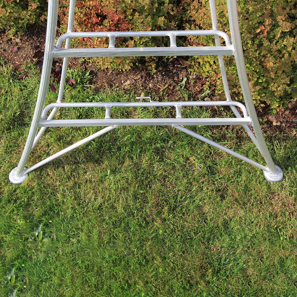 Die Hasegawa Gartenleiter ist aus Aluminium gefertigt, rostbeständig und leicht. Durch die zusammenklappbare Konstruktion und das geringe Gewicht der Aluleiter kann sie einfach transportiert und platzsparend aufbewahrt werden.
