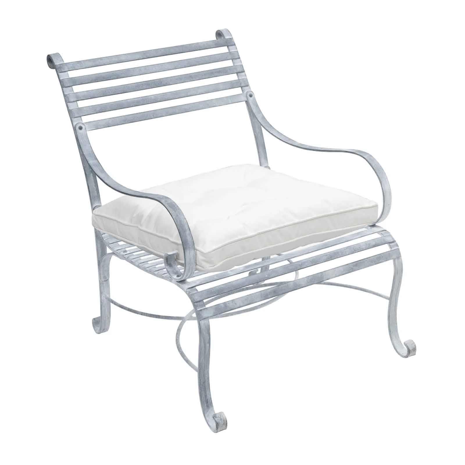 - Robuster Rahmen (Stärke 8 mm) mit komfortabler Sitzfläche und Rückenlehne (Stärke 3 mm) und geschwungenen Armlehnen (Stärke 5 mm)