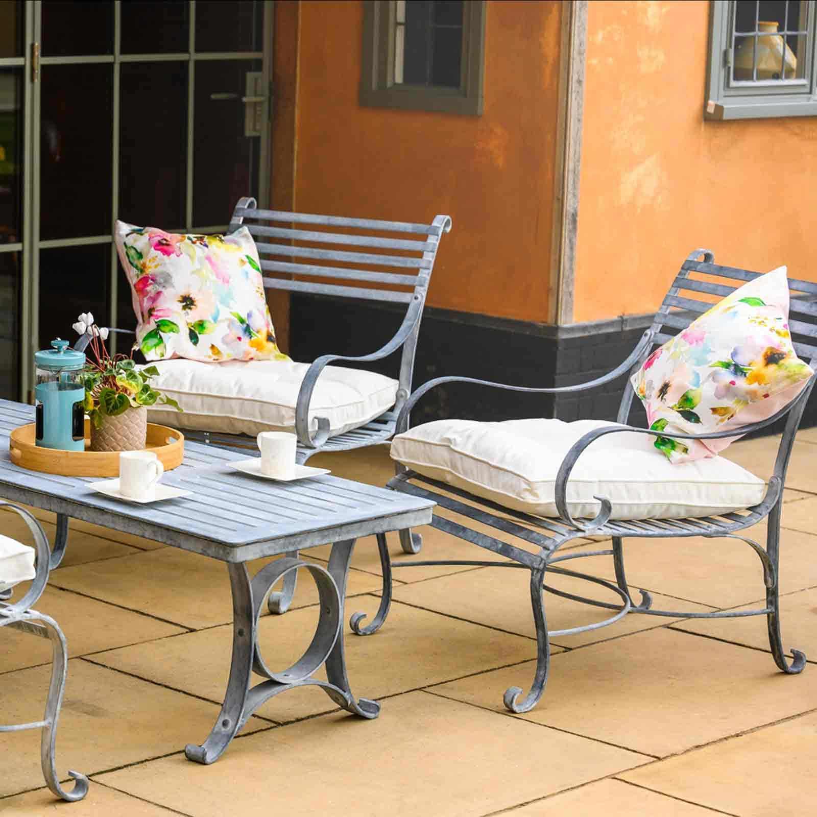 Die Gartenmöbel aus der »Southwold-Collection« sind eine atemberaubende Ergänzung für Ihren Außenbereich. Inspiriert von traditionellen englischen Schmiede-Möbel, haben diese Gartenmöbel einen zeitlosen Reiz und wurden für hohen Sitzkomfort konzipiert. Sie sind Teil der exklusiven Harrod Southwold Gartenmöbel-Kollektion: Handgefertigte Gartenmöbel im traditionellen Stil, hergestellt aus hochwertigem Stahl. Der Stahl wird für eine lange Lebensdauer feuerverzinkt und dann "handgeätzt", um das antike Finish zu erzielen. Aufgrund der handgefertigten Herstellungs- und Veredlungsmethoden sind alle Tische und Stühle Unikate, die im Laufe der Zeit mit der Witterung nur noch besser werden.