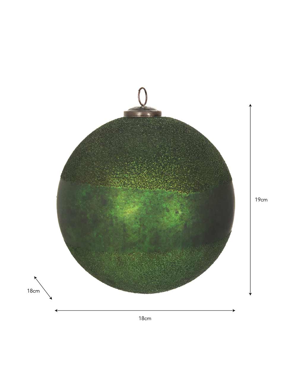 Eine besonders schöne Weihnachtskugel aus recyceltem Glas. Sie verbindet traditionelle und moderne Elemente. Die strukturierte Oberfläche und die variierenden Grüntöne erzeugen einen dezenten Glanz. Sie eignet sich perfekt für große Kaminsimse, Treppenhäuser und Konsolen. Und natürlich kann man sie auch aufhängen.