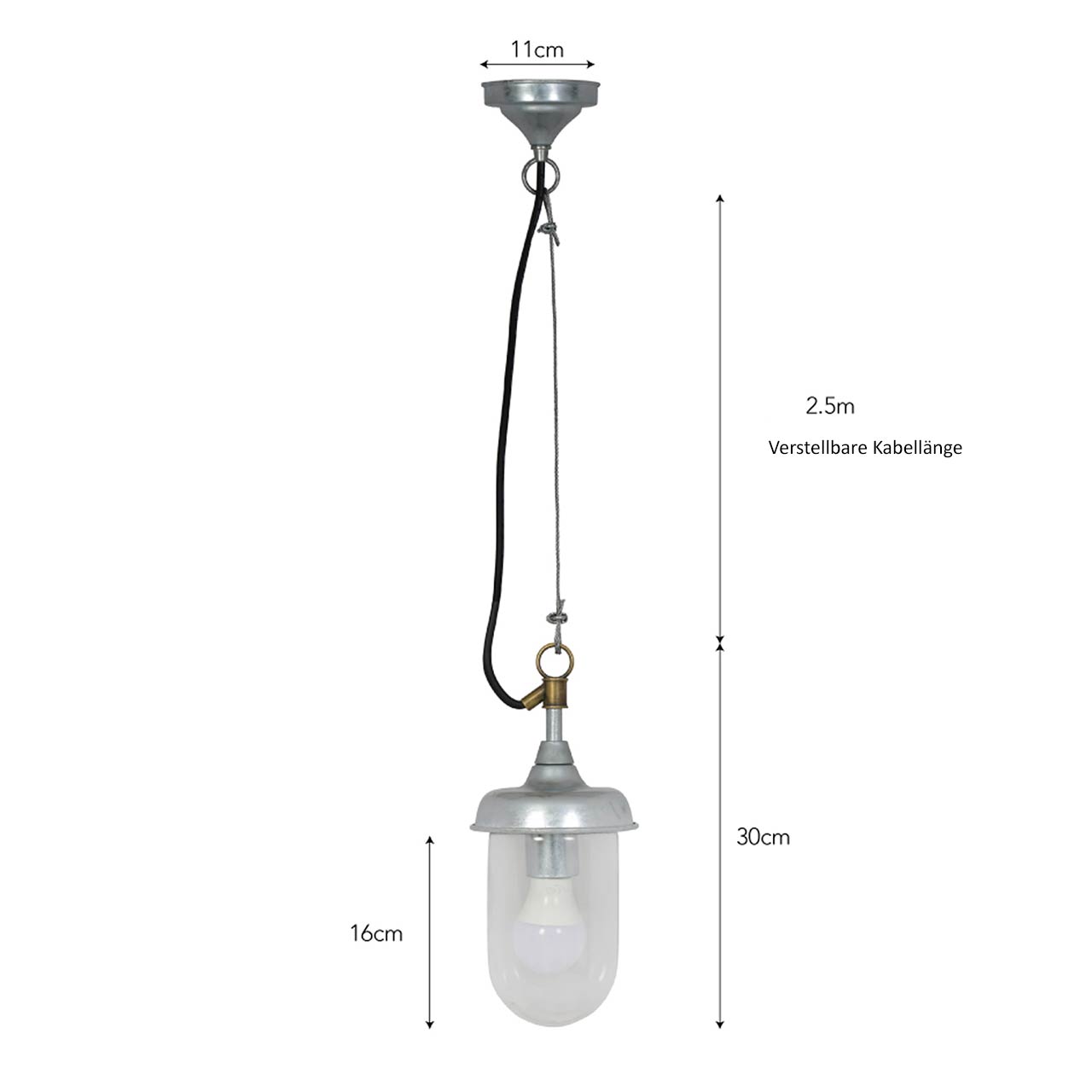 Höhe 30 cm | Durchmesser 13,2 cm | Wandbefestigungsplatte Ø11 cm - Kabellänge verstellbar, bis 2,5 m