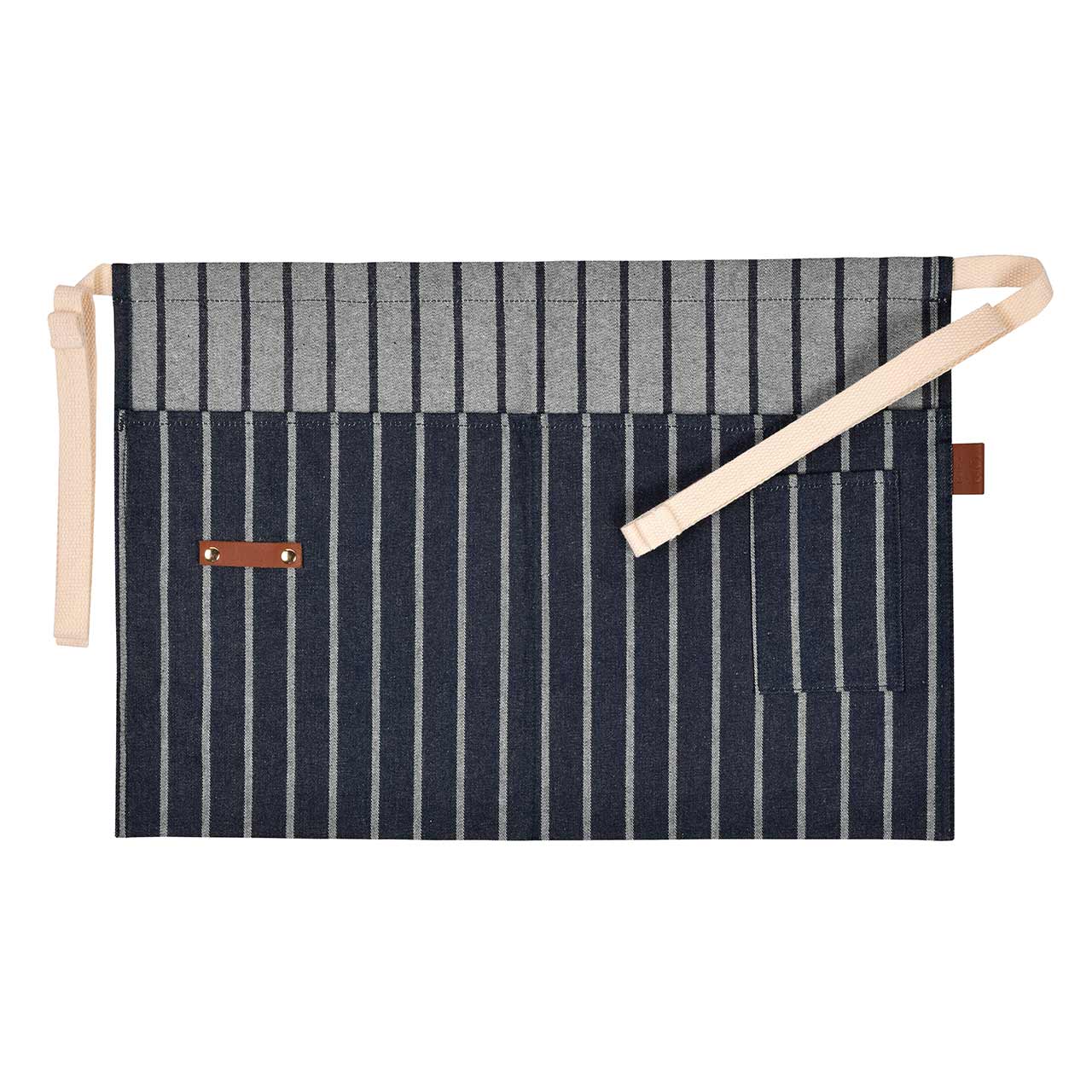 Das zeitlose Ticking-Streifendesign des schweren Baumwollstoffs ist ein Dauerbrenner und ergänzt perfekt das klare, dezente Design der Gärtnerschürze.