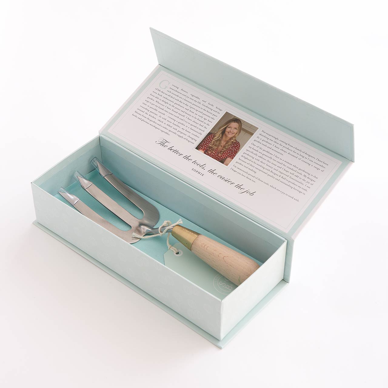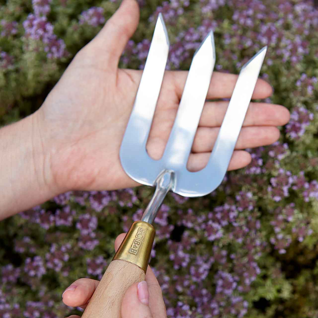 Sophie Conran - gutes Design, durchdacht bis ins letzte Detail. Die Zinken der Handgabel sind nicht nur spitz zulaufend geformt, sondern sind zusätzlich schräg angeschärft. Ein müheloses Eindringen in den Boden ist garantiert. Zusammen mit dem Griff aus gewachstem Buchenholz ermöglicht dieses Werkzeug ein optimales Arbeiten.