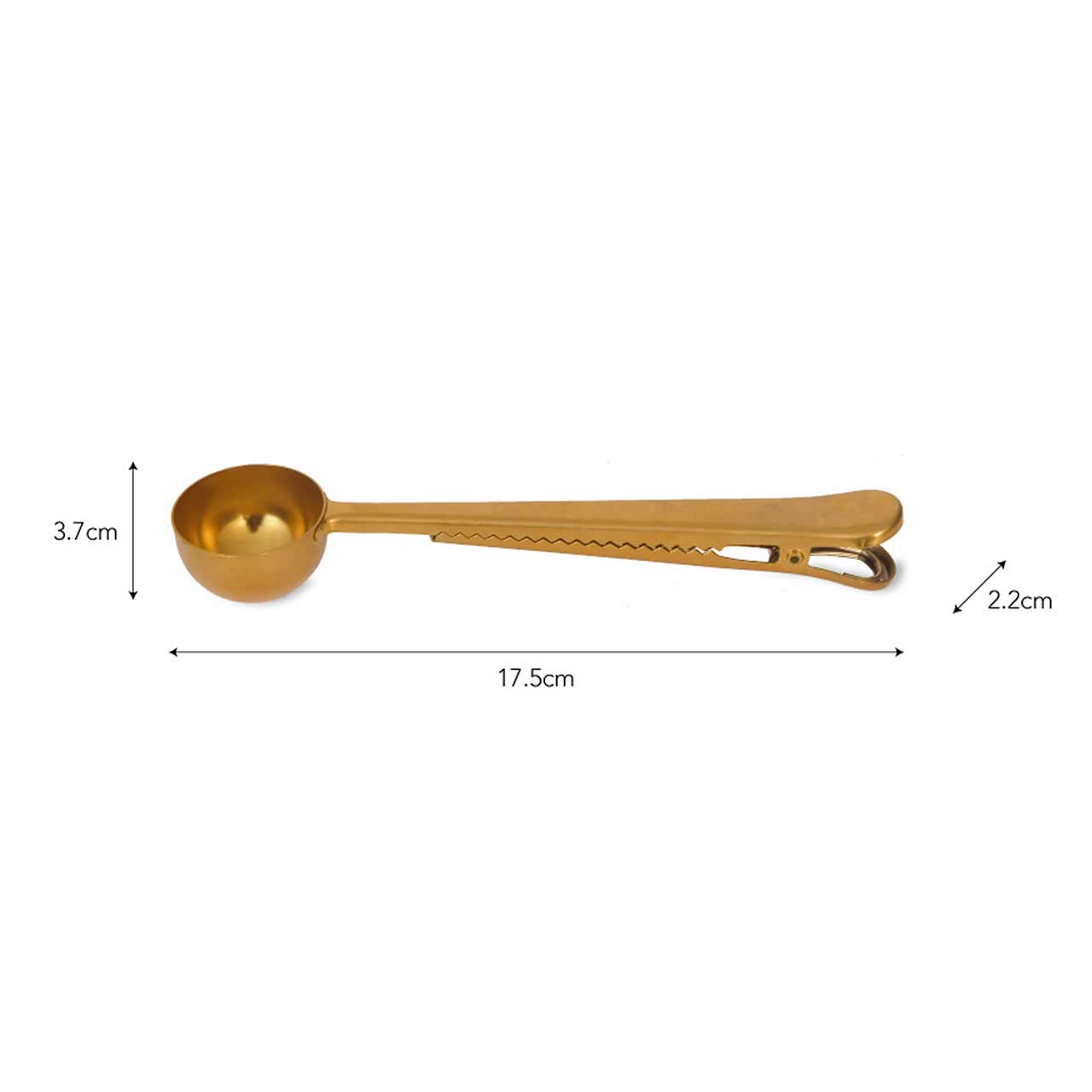 Dieser schöne Kaffeedosierlöffel aus der »Brompton« Küchenserie ist aus Edelstahl gefertigt und mit einem Messing-Finish veredelt. Praktisch: Der Kaffeedosierlöffel ist mit einem cleveren Krokodilclip ausgestattet. So können Sie den Kaffeebeutel wieder verschließen und das Aroma bleibt erhalten.