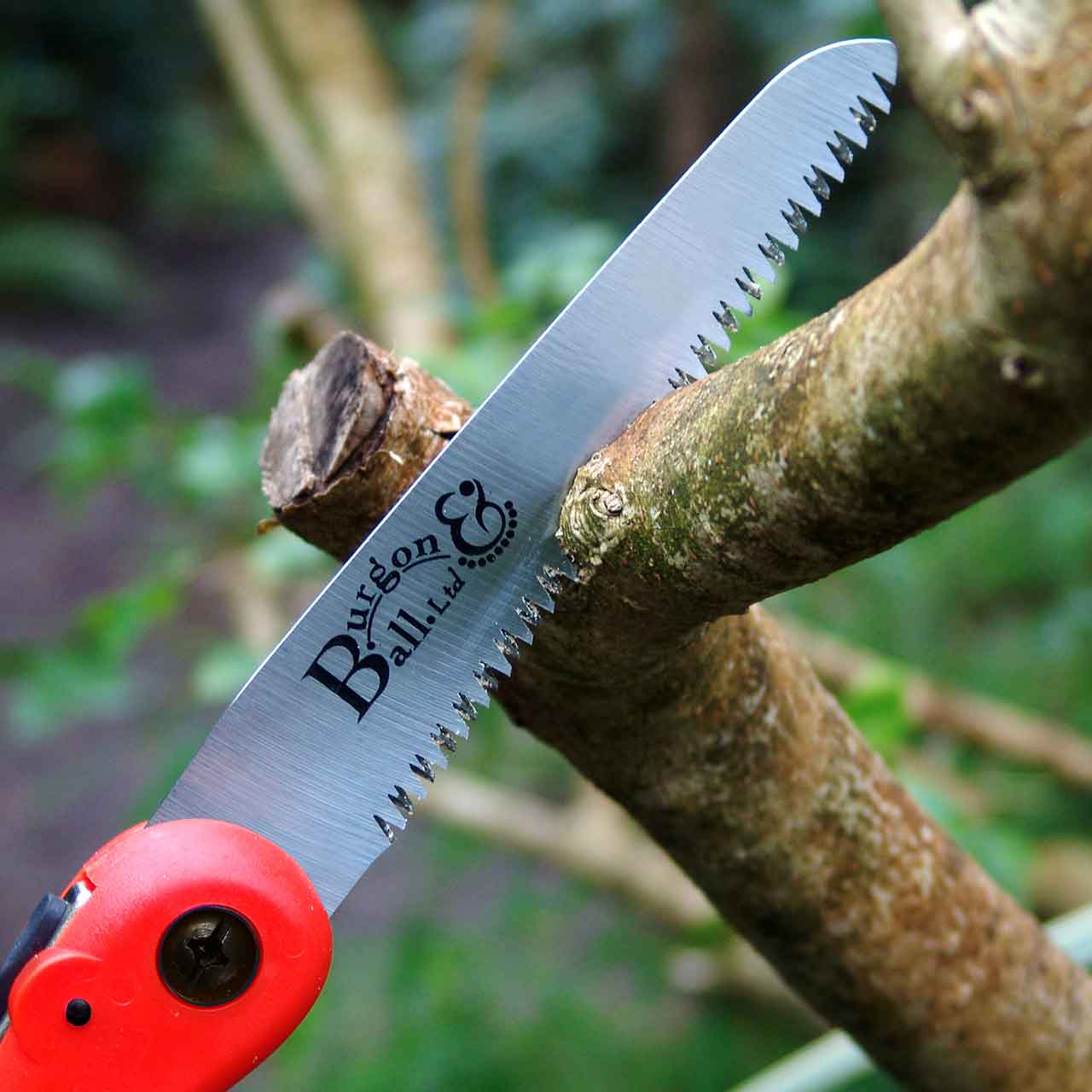 Die Klappsäge von Burgon & Ball ist eine der besten klappbaren Astsägen. Die hervorragende Schnittleistung dieser Säge beruht auf der patentierten Zahnform mit jeweils drei sehr scharfen Schneidflächen je Zahn. Dieses ermöglicht eine sehr saubere Schnittfläche, die Wasser gut abfließen lässt und somit die Fäulnisbildung verhindert. Selbst Äste mit einem größeren Durchmesser lassen sich noch sauber schneiden, wie der Beispielschnitt des Feldahorns auf Bild 2 und Bild 3 zeigt.
