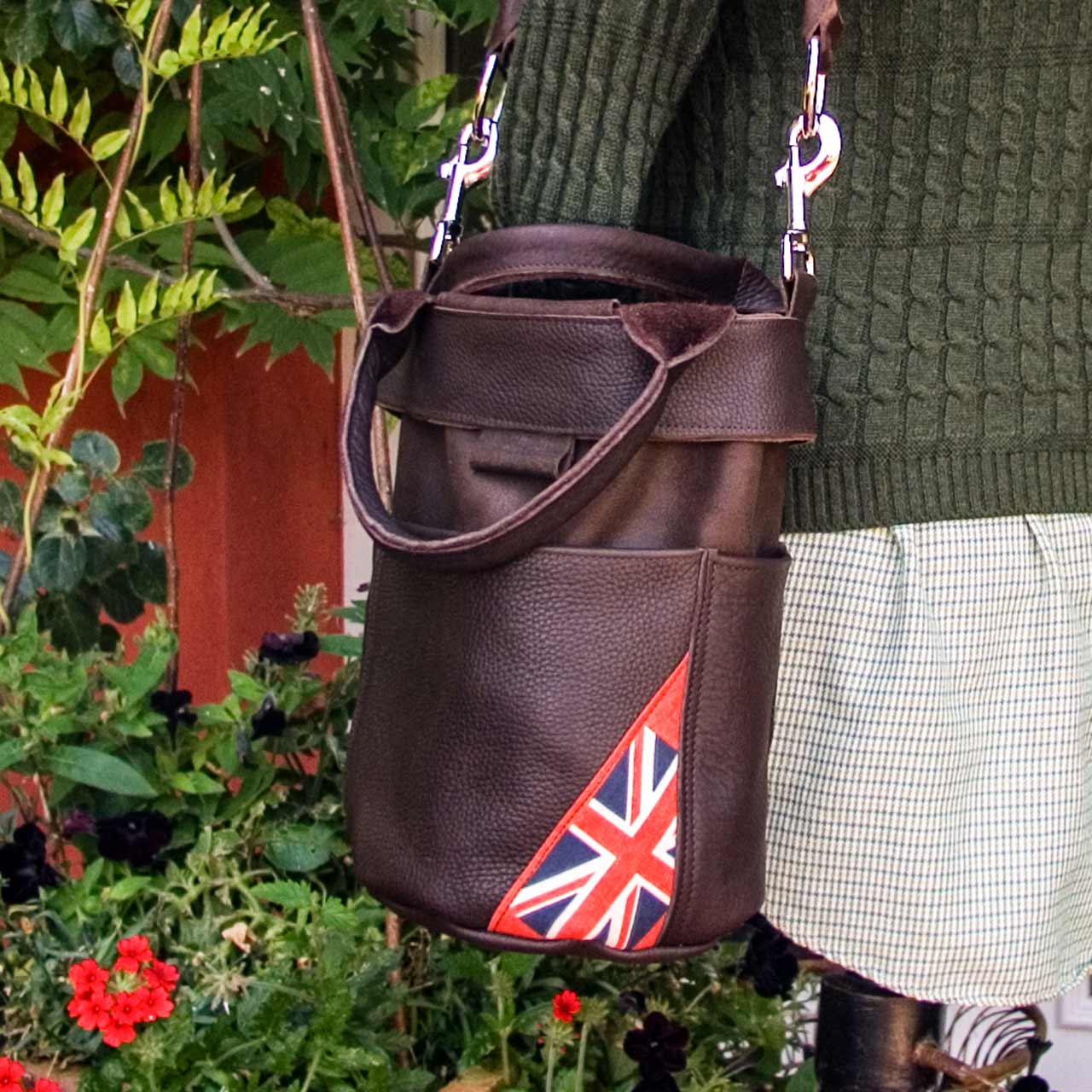Die »All Leather Bucket Bag« in der Variante mit Flaggen-Motiv. Very British!