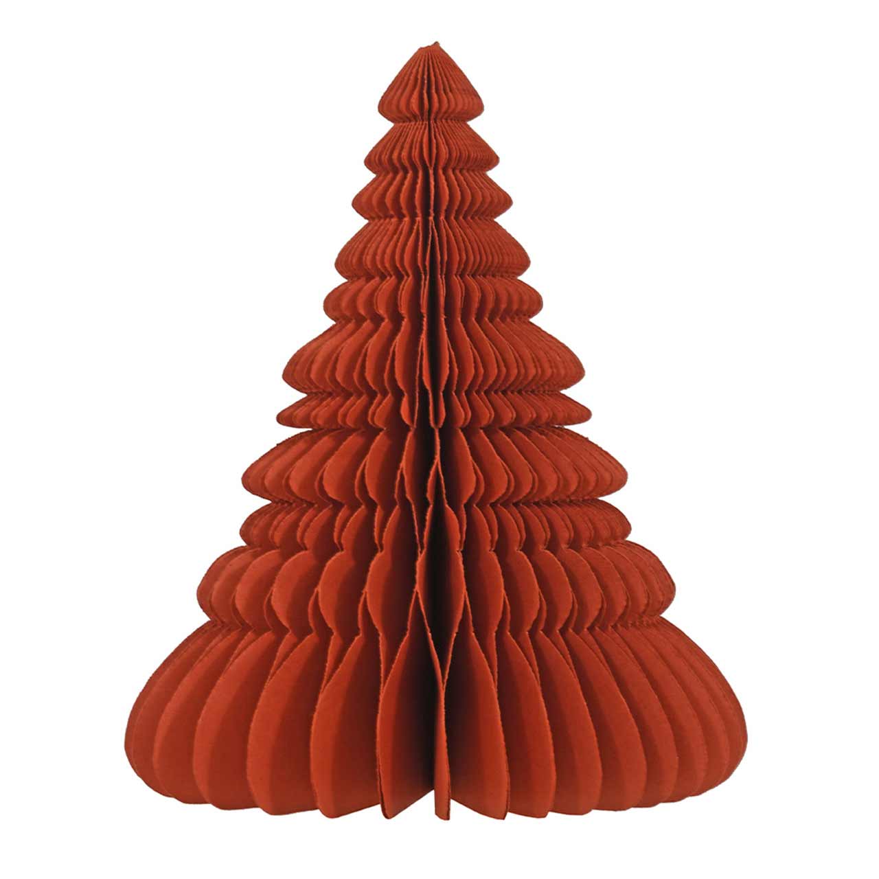Eine schöne alte Idee wurde wieder neu entdeckt! Gefertigt aus samtigem Baumwollpapier, in einem schönen Ziegelrot verbindet dieses Papierbäumchen modernen Weihnachtsschmuck mit ökologischem Anspruch. Ob stehend als Tischdeko oder hängend am Fenster oder der Zimmerecke, dieses Bäumchen zieht alle Blicke auf sich! Da es noch eine größere Variante gibt, kann man die Papierbäumchen auch schön als Duo platzieren.