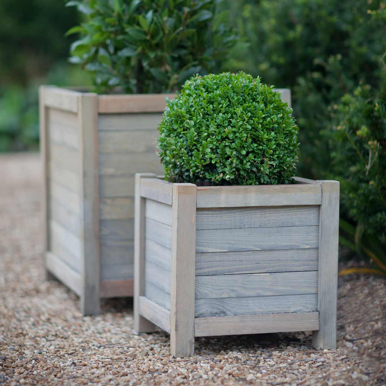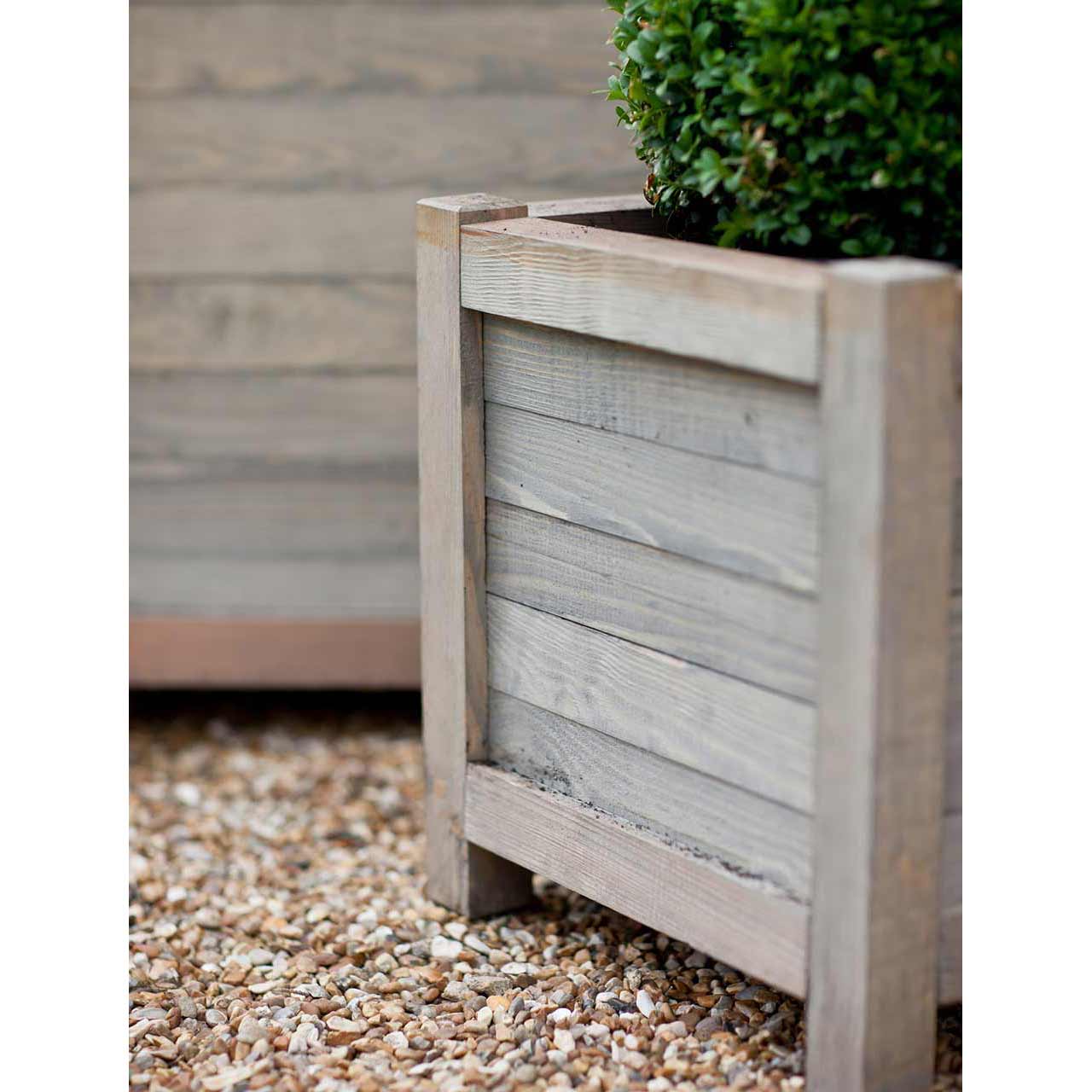 Der Pflanzkübel »Charlbury« überzeugt mit seiner klassischen Quaderform. Buchsbäume, kleinere Olivenbäume, Oleander, Zitrusgewächse und viele andere Pflanzen entfalten in diesen stilvollen Pflanzgefäßen ihre volle Wirkung. Die Pflanzkübel können solitär, als gleich großes Paar oder als Set mit unterschiedlichen Größen aufgestellt werden. Der kleinere Pflanzkübel eignet sich durch sein geringeres Gewicht besonders für nicht winterharte Pflanzen, welche am Ende der Gartensaison an einen frostsicheren Ort verbracht werden müssen. Die Pflanzkübel können auch prima als Übertopf oder als dekoratives Kräuterbeet genutzt werden. Auch hier wurden die Eckhölzer aus einem Stück gefertigt, damit keine Spalten entstehen.