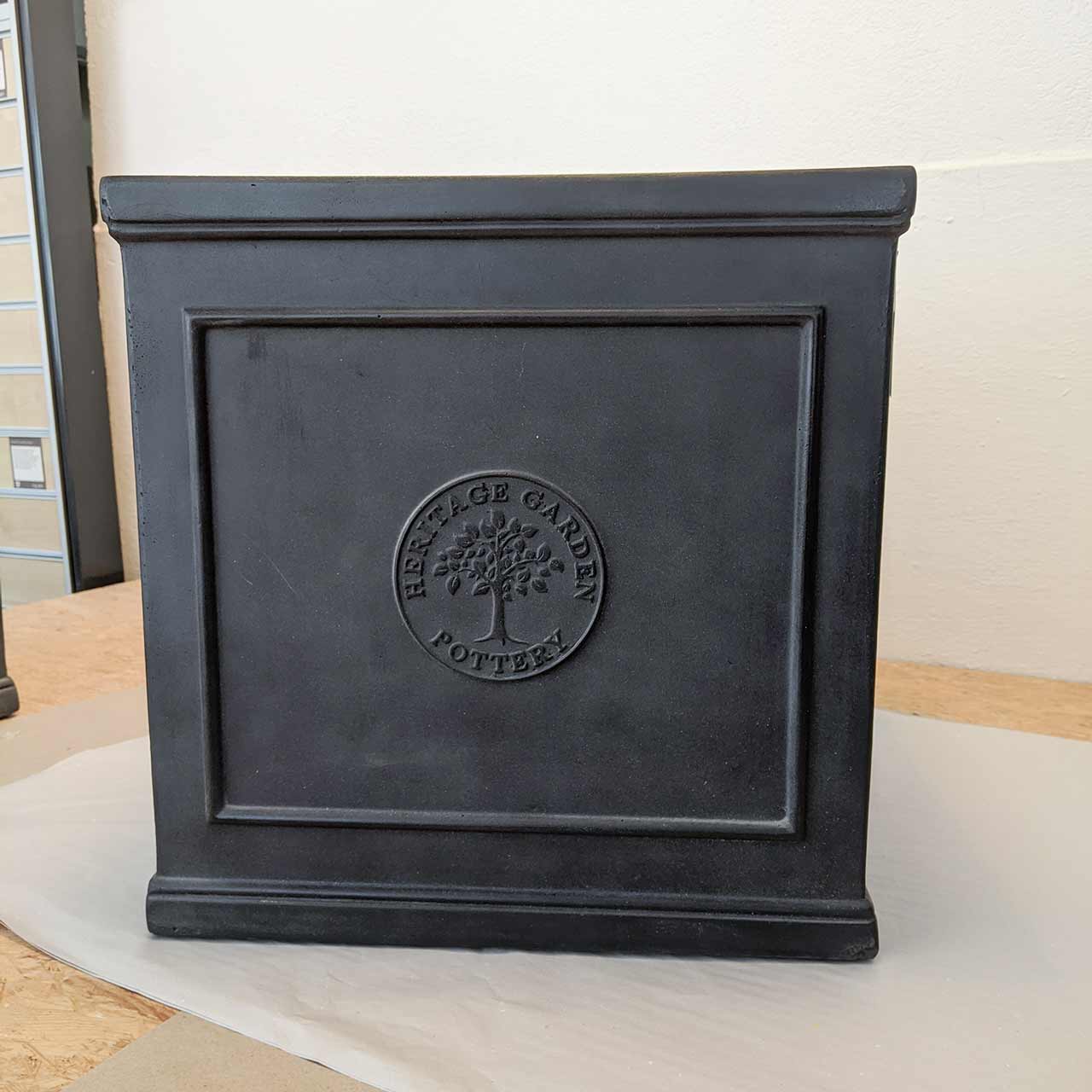 Der handgefertigte Pflanzkübel »Heritage« besticht mit seiner authentischen Oberfläche in traditioneller Bleiguss-Optik. Die Vorderseite zeigt ein attraktives 'Heritage Garden Pottery' - Ornament.