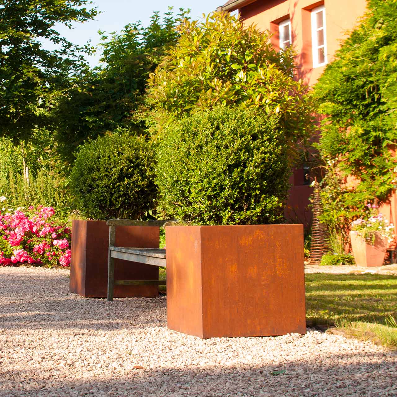 Die herrlichen Pflanzkübel »King's Cube« sind ein echter Blickfang. Die Symmetrie der Kubus-Form und die stets etwas differierende Farbgebung der Rostpatina machen jedes dieser Pflanzgefäße zu einem individuellen und zeitlosen Gestaltungselement.