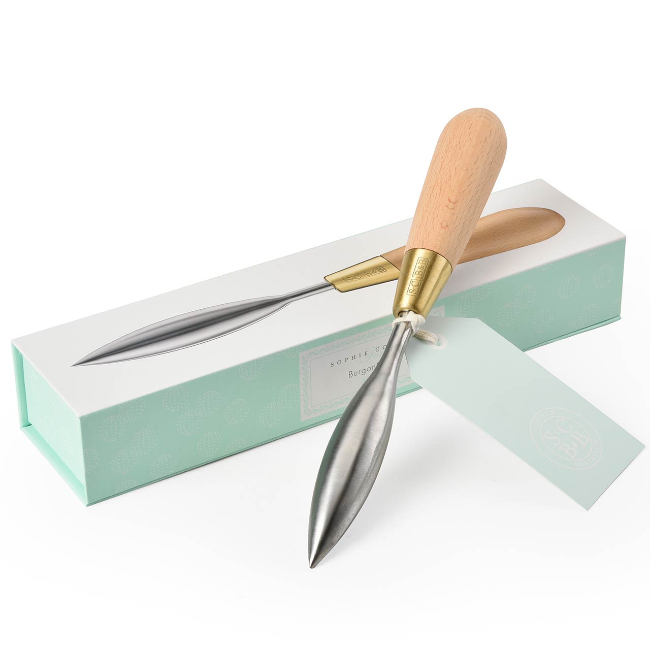 Ein unverzichtbares Werkzeug für das Pflanzen von Samen und Setzlingen, auch in Gras oder härteren Böden. Drücken Sie einfach mit der Spitze ein Loch in den Boden (etwas rotieren für ein größeres Loch), bringen Sie das Pflanzgut ein und bedecken Sie das Loch wieder mit Erde. Der Griff aus gewachstem Buchenholz liegt angenehm in der Hand und erleichtert das Arbeiten. Der Metallkorpus ist für eine maximale Langlebigkeit aus rostfreiem Edelstahl gefertigt.