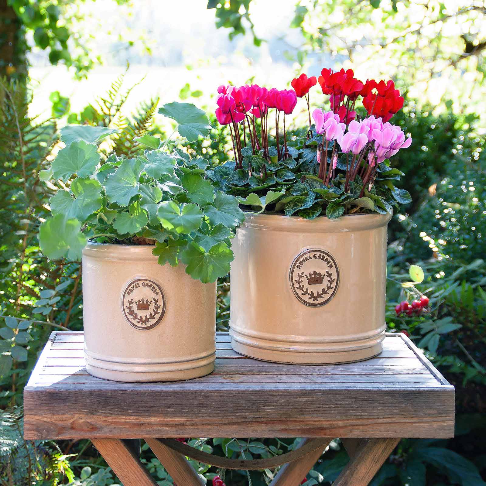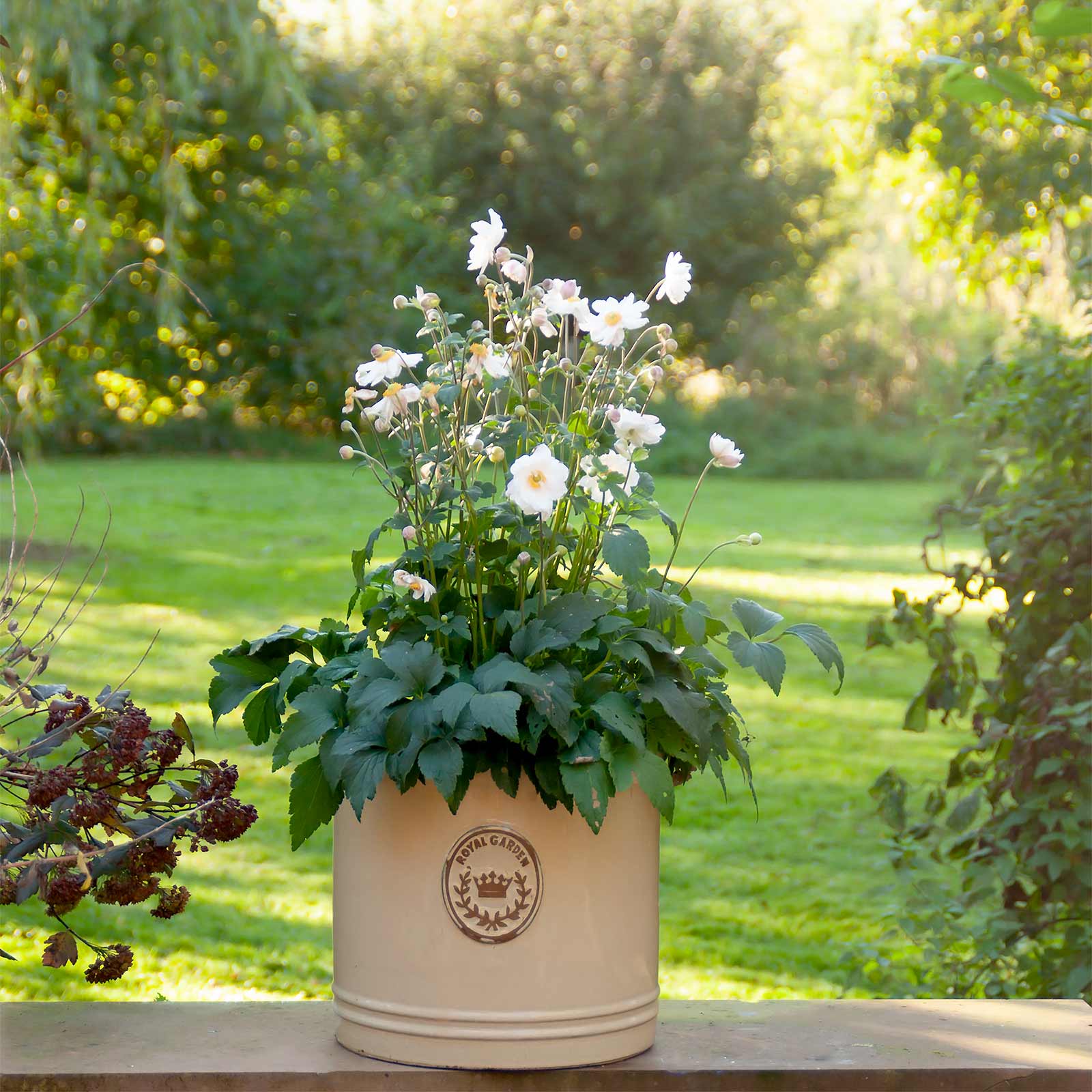 Alle Schalen sind aus Keramik gefertigt und haben eine dezent-cremefarbene Glasur, verziert mit dem 'Royal Garden' Emblem.