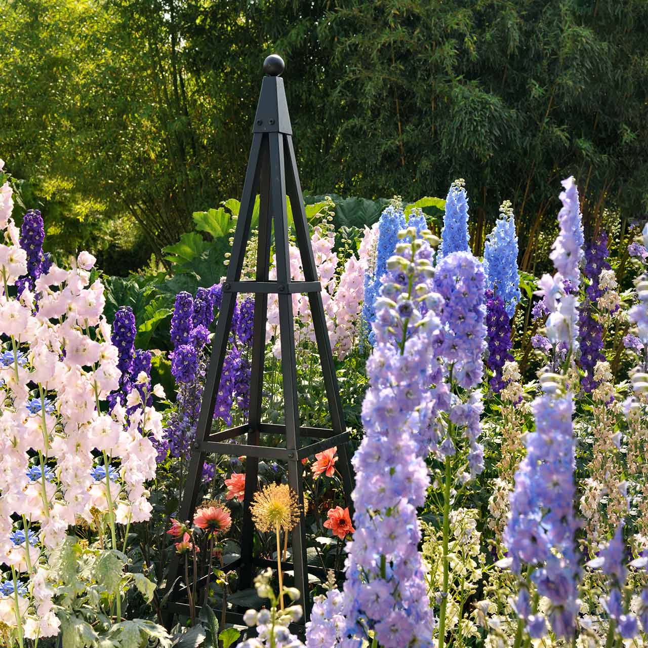 Die Rankhilfe »Pyramide« ist sowohl berankt als auch ohne Bewuchs ein echter Hingucker. Mit einer Höhe von 2,10 m und dem verwendeten Vierkantrohr bietet diese attraktive Rankpyramide eine sichere und dauerhafte Kletterhilfe für Rosen und andere mehrjährige Kletterpflanzen.