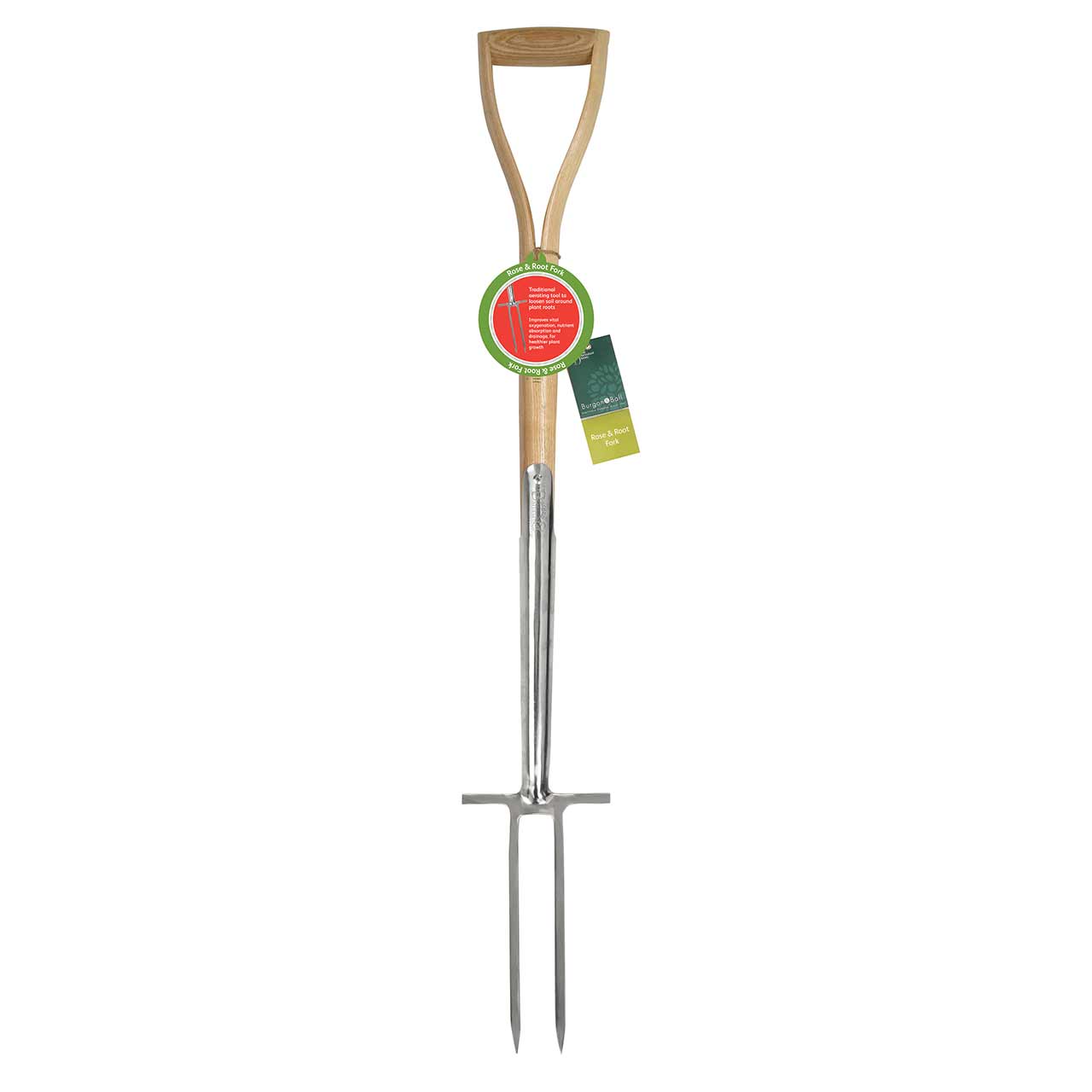 Die Rosengabel von Burgon & Ball ist ein Muss für alle Rosenfreunde. Rosen benötigen viel Luft im Wurzelbereich, der Boden sollte mindestens einmal jährlich aufgelockert werden, am besten beim Abhäufeln Anfang April. Hierzu wird die Rosengabel vorsichtig in das Erdreich gestochen und ebenfalls vorsichtig vor- und zurückbewegt. Die Rosengabel wurde speziell für die Bodenbelüftung konzipiert; sie besitzt, im Gegensatz zur Grabegabel, nur zwei Zinken, ideal um die tieferen Wurzeln der Rosen kraftsparend und schonend zu belüften. So wird der Wurzelfäule vorgebeugt, Sauerstoff und Wasser können zirkulieren und Nährstoffe besser aufgenommen werden. Die Rose dankt es mit kräftigem, gesundem Wachstum.
