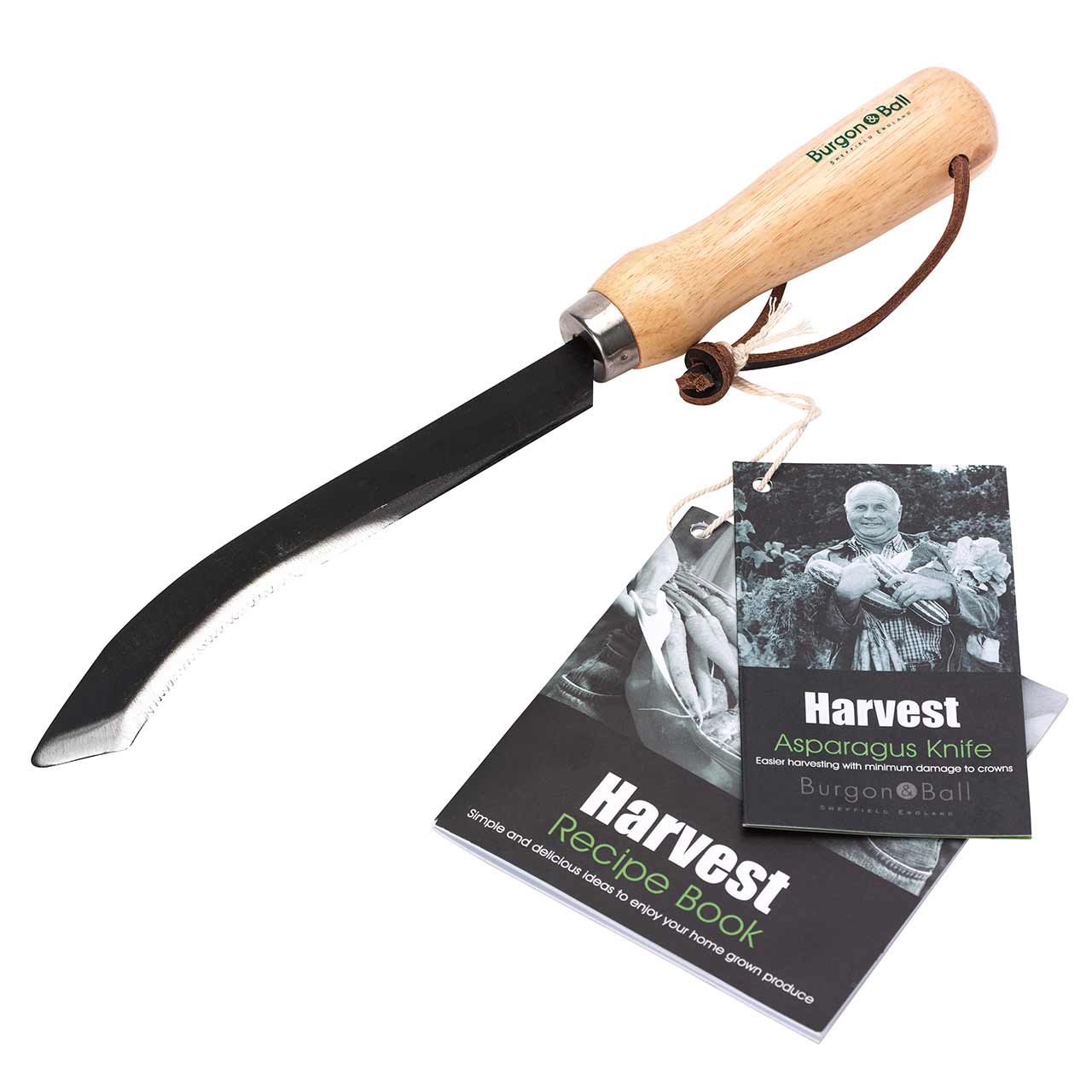 Das Spargelmesser ist aus Carbonstahl geschmiedet und bietet auch beim Arbeiten in der Erde eine dauerhafte Schärfe. Der Griff ist aus haltbarem Eschenholz gefertigt und liegt gut in der Hand.