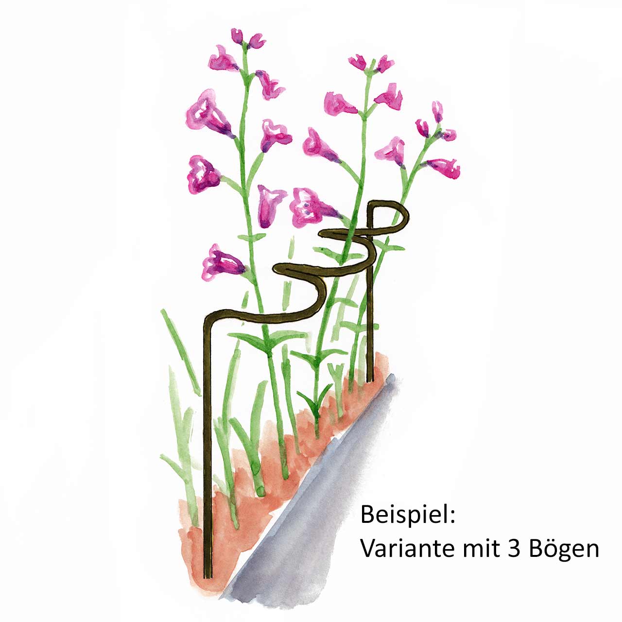 Die Staudenstützen »Scalloped Border Restraints« besitzen mehrere kleinere Bögen in denen sich die Stauden unregelmäßig anordnen, ideal um an Wegen und Abgrenzungen eine sehr natürliche Kontur der Bepflanzung zu erhalten. Um den verschiedenen Pflanzen gerecht zu werden, sind die Staudenstützen mit drei oder fünf Bögen, sowie in unterschiedlichen Höhen erhältlich. Die Varianten mit einer Weite von 30 cm besitzen 3 Bögen, die Varianten mit einer Weite von 50 cm besitzen 5 Bögen.